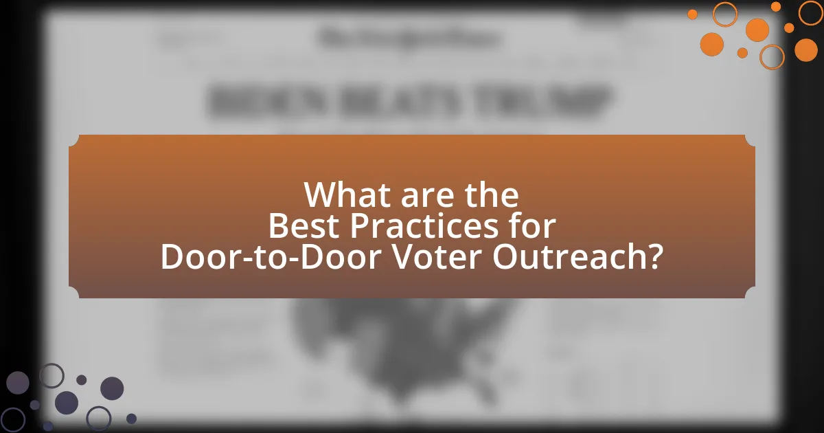 The best practices for door-to-door voter outreach include thorough preparation, effective communication, and follow-up engagement. Preparation involves training volunteers on key issues, candidate positions, and voter registration processes to ensure they can answer questions accurately. Effective communication requires using clear, respectful language and actively listening to voters’ concerns, which fosters trust and rapport. Follow-up engagement, such as sending thank-you notes or providing additional information, reinforces connections made during the outreach. Research indicates that personal interactions significantly increase voter turnout, with studies showing that face-to-face contact can boost participation rates by up to 10%.